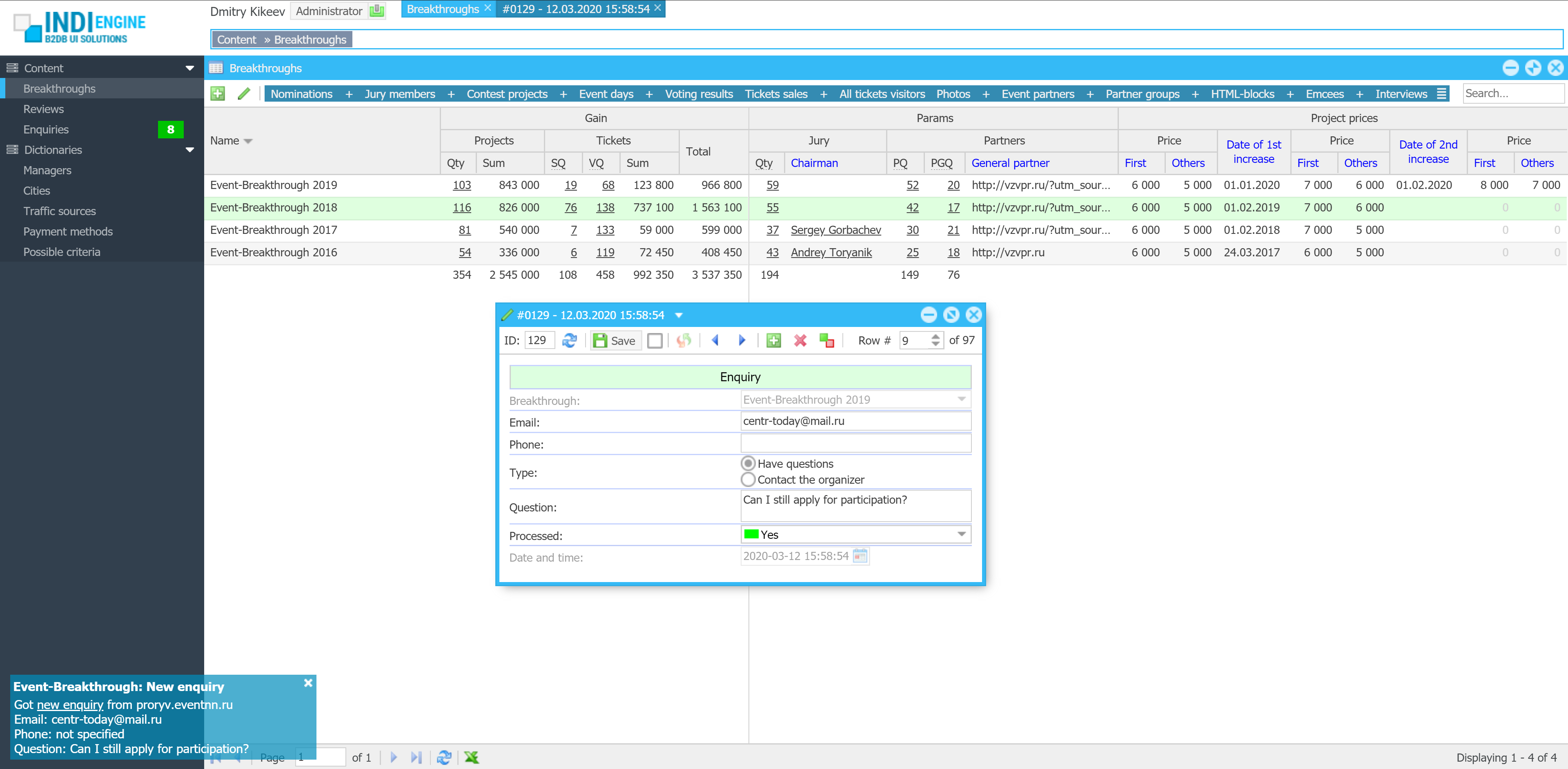 Indi Engine is proud to present a new look and feel for the way of how you can take control over your business, as our modern complex realtime apps for business are built using the top-notch technologies and we do provide the exceptional delivery speed, which is made possible thanks to the 90% automation of both client/server-side development, mostly consisting of configuring сomplex forms / grids hierarchies, that are auto-connected to the auto-created underlying DB structures.
