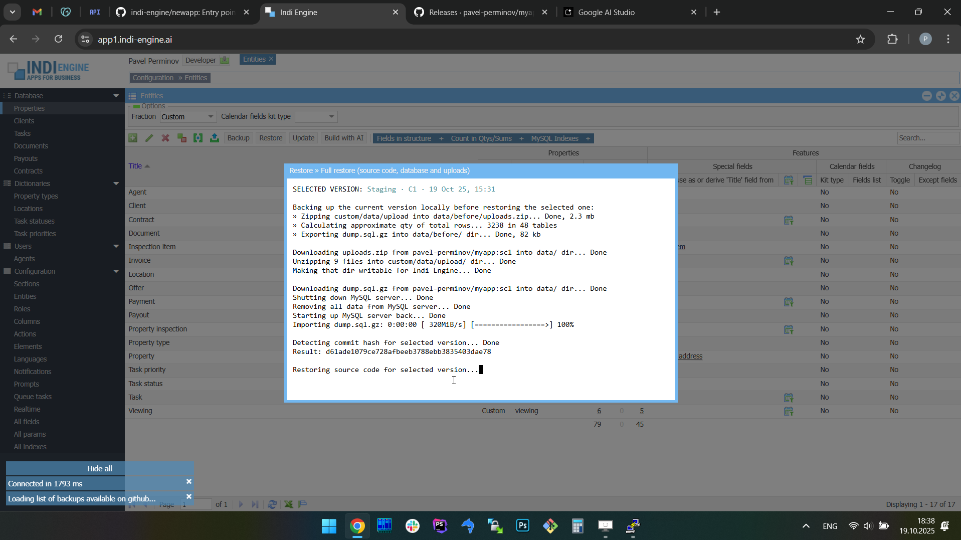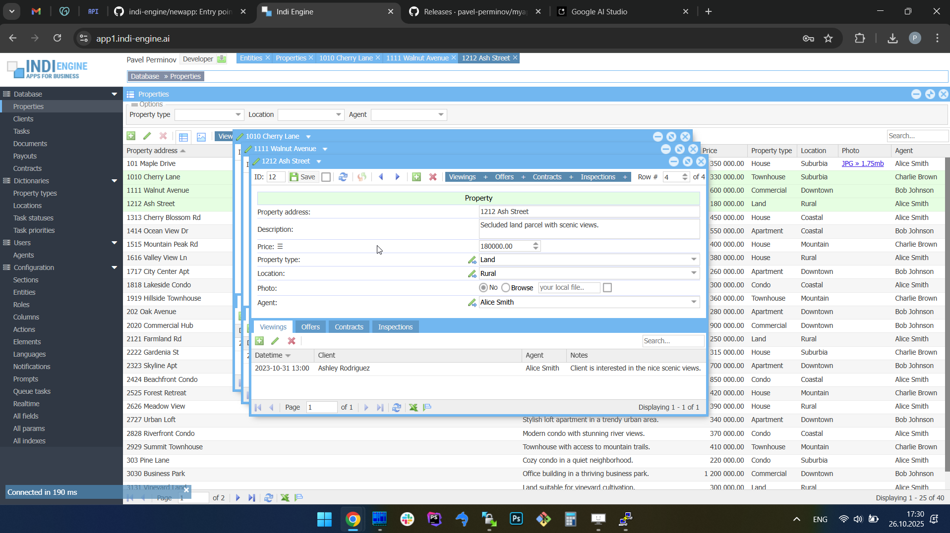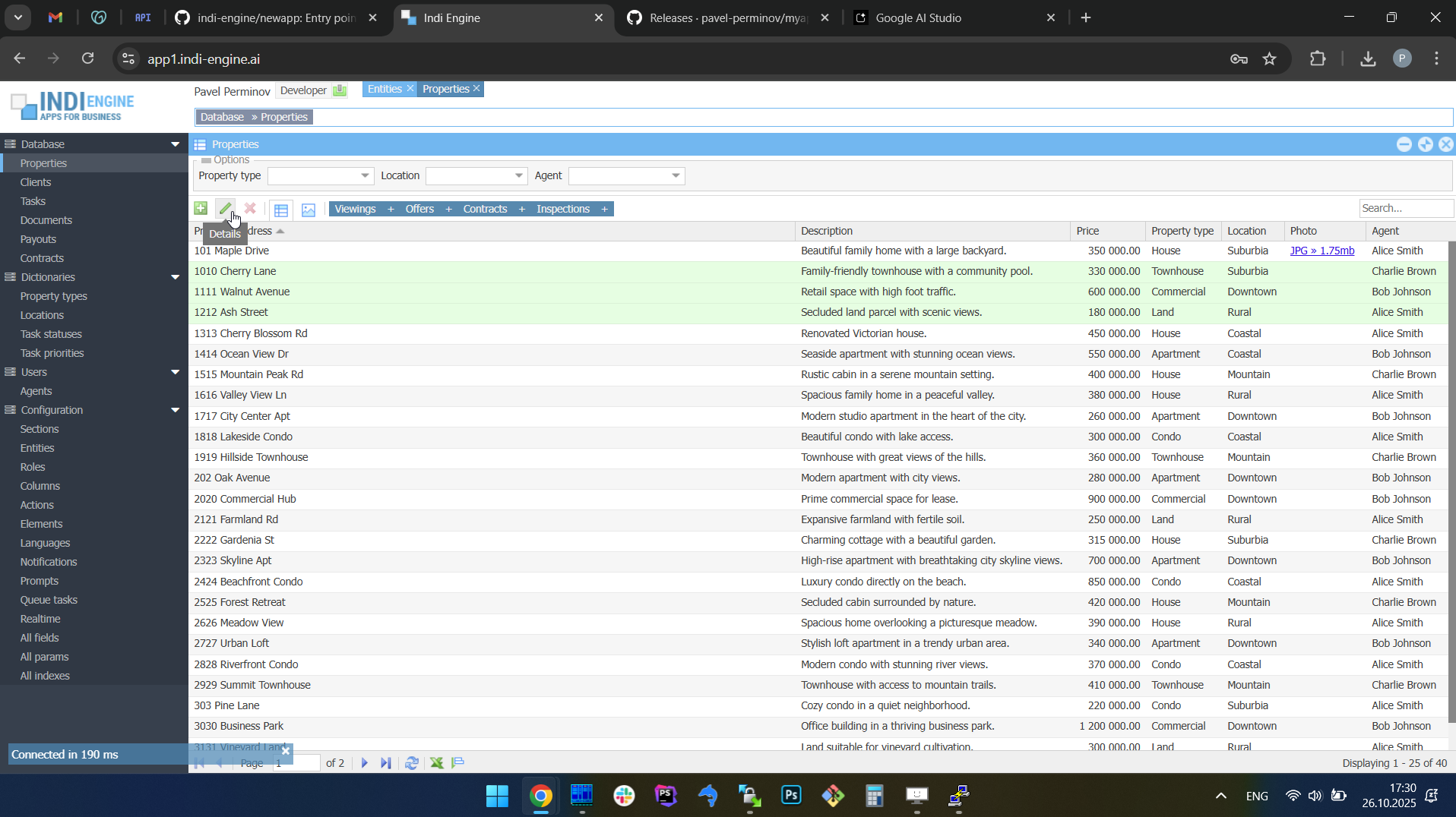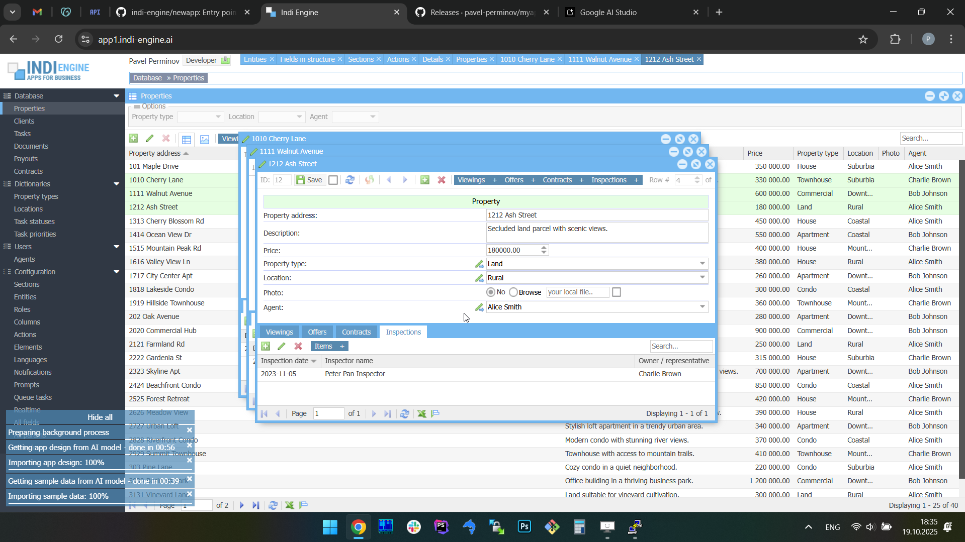 However, there are two things to keep in mind about the screencaptures above. The first one is that the demonstration above - is starting at the chronological point where we already have two records in the AI response history, and the last one of them (appears at the most-top of the list) is the one that is currently imported into the Indi Engine app instance shown there - it is the real estate company app.