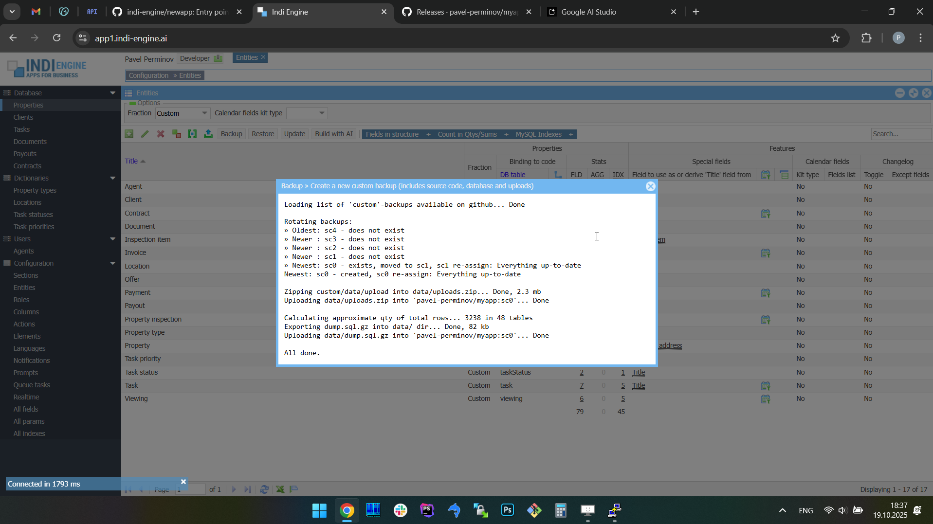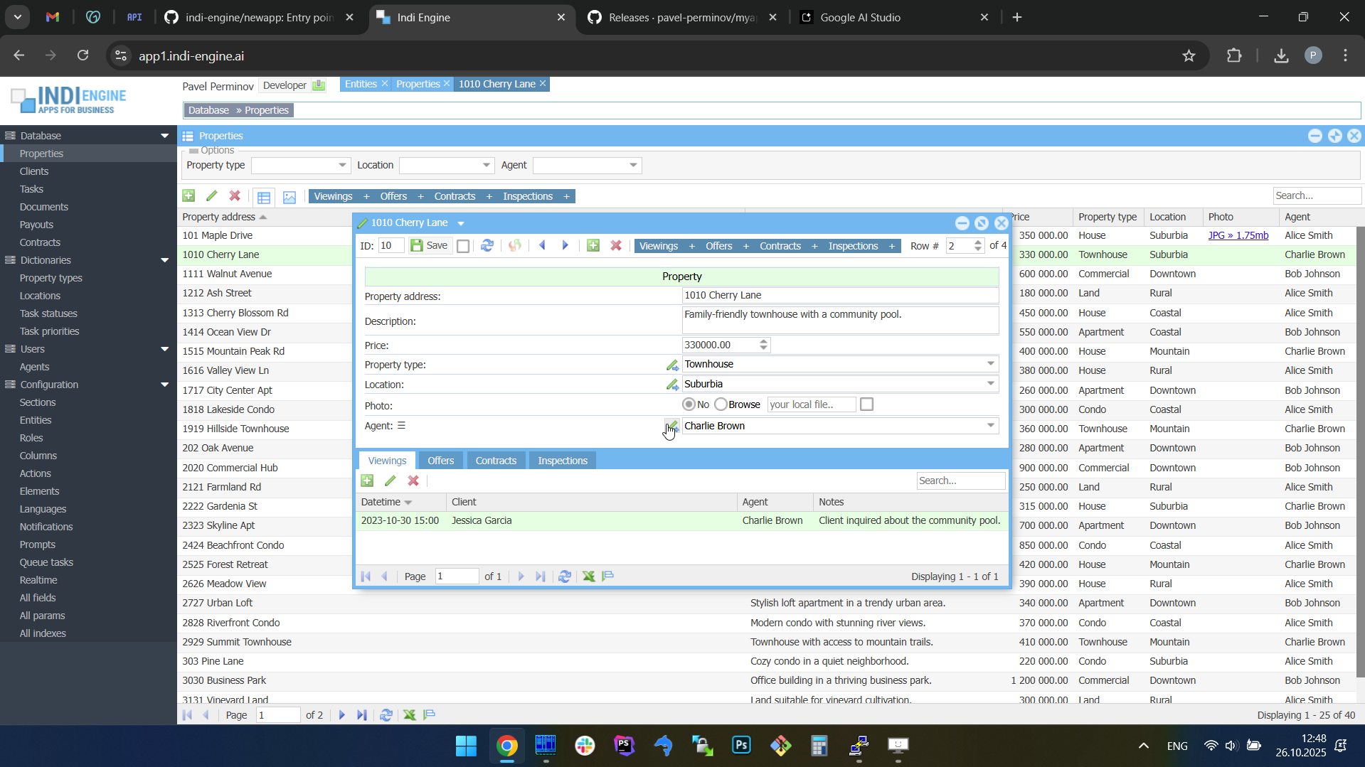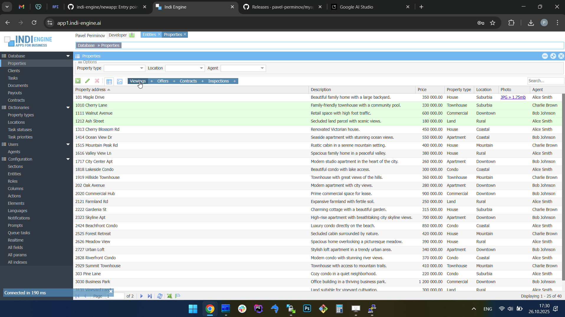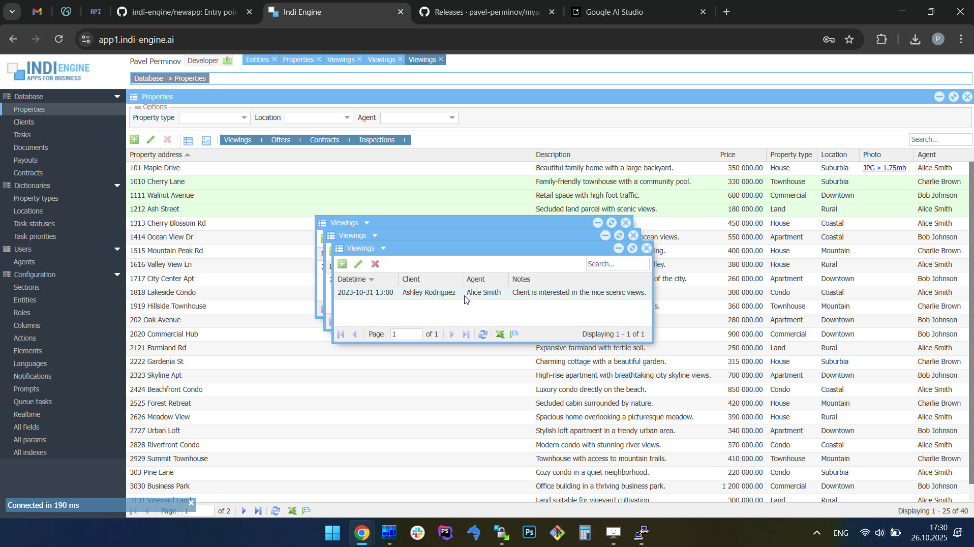 However, there are two things to keep in mind about the screencaptures above. The first one is that the demonstration above - is starting at the chronological point where we already have two records in the AI response history, and the last one of them (appears at the most-top of the list) is the one that is currently imported into the Indi Engine app instance shown there - it is the real estate company app.