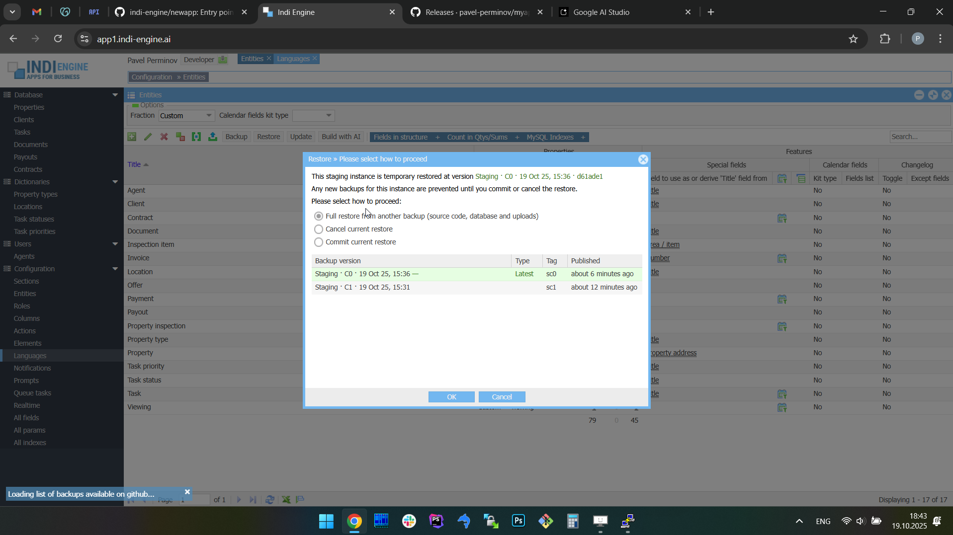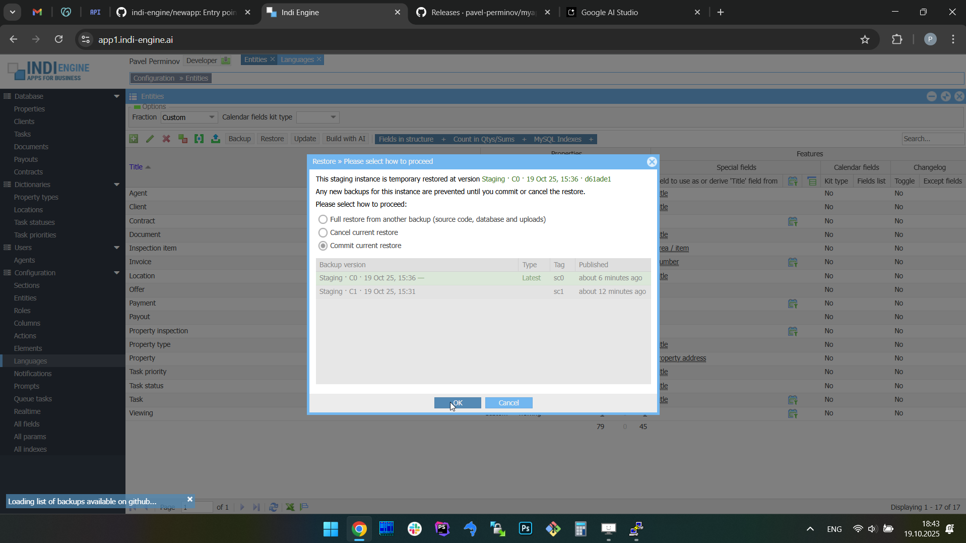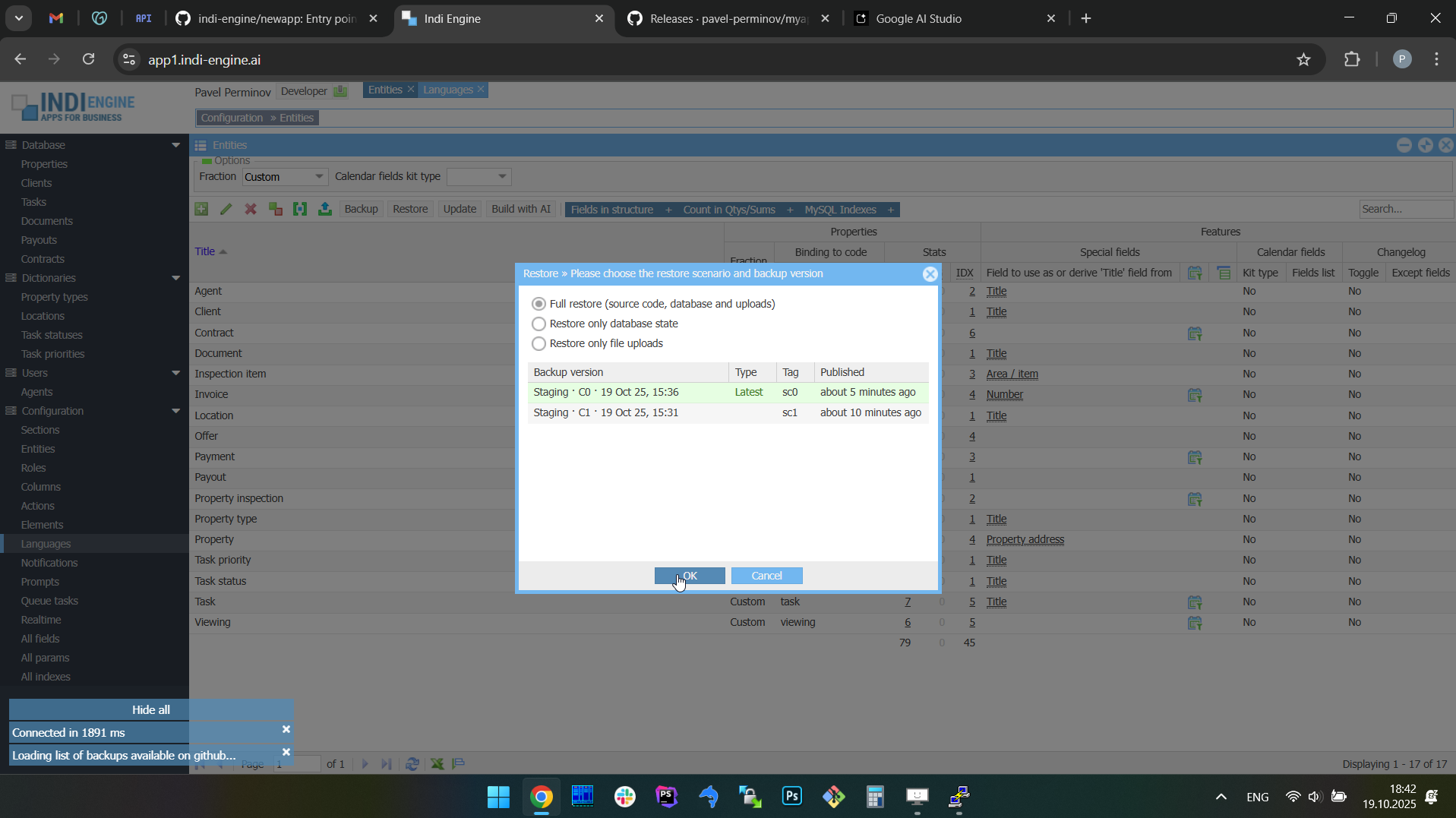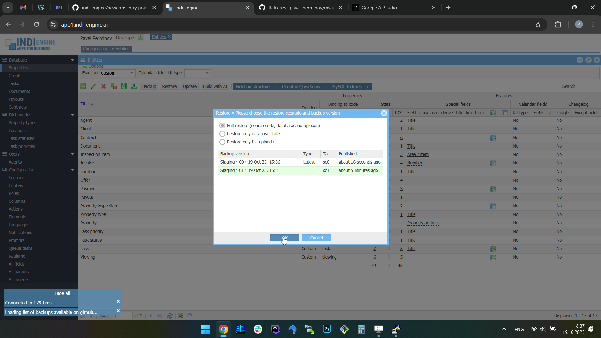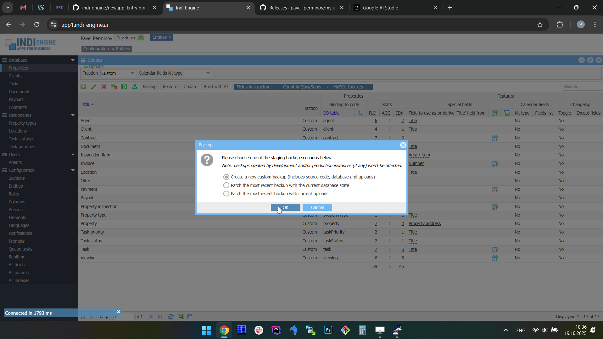 Once OK-button pressed, Indi Engine will do the remaining steps: