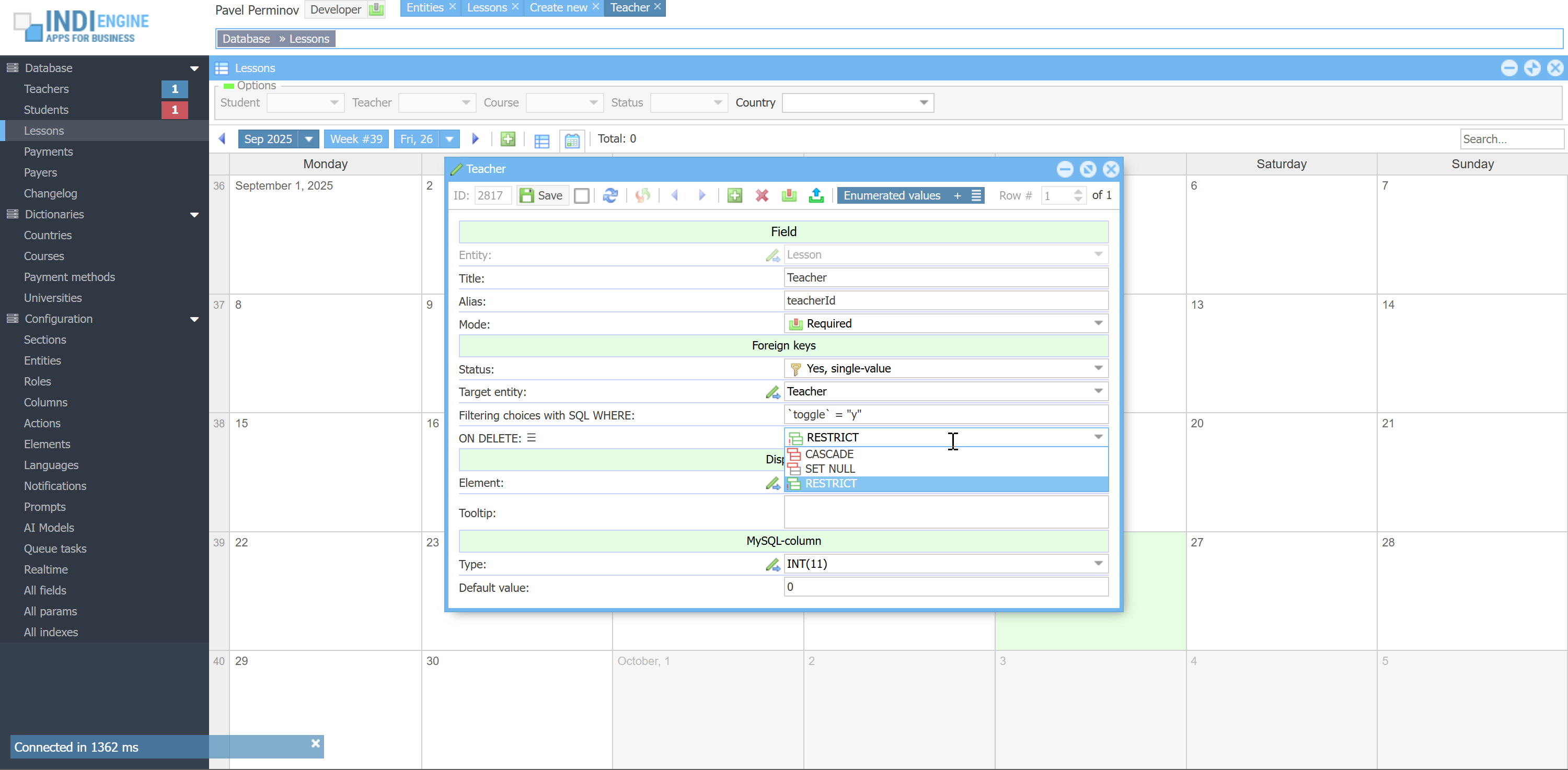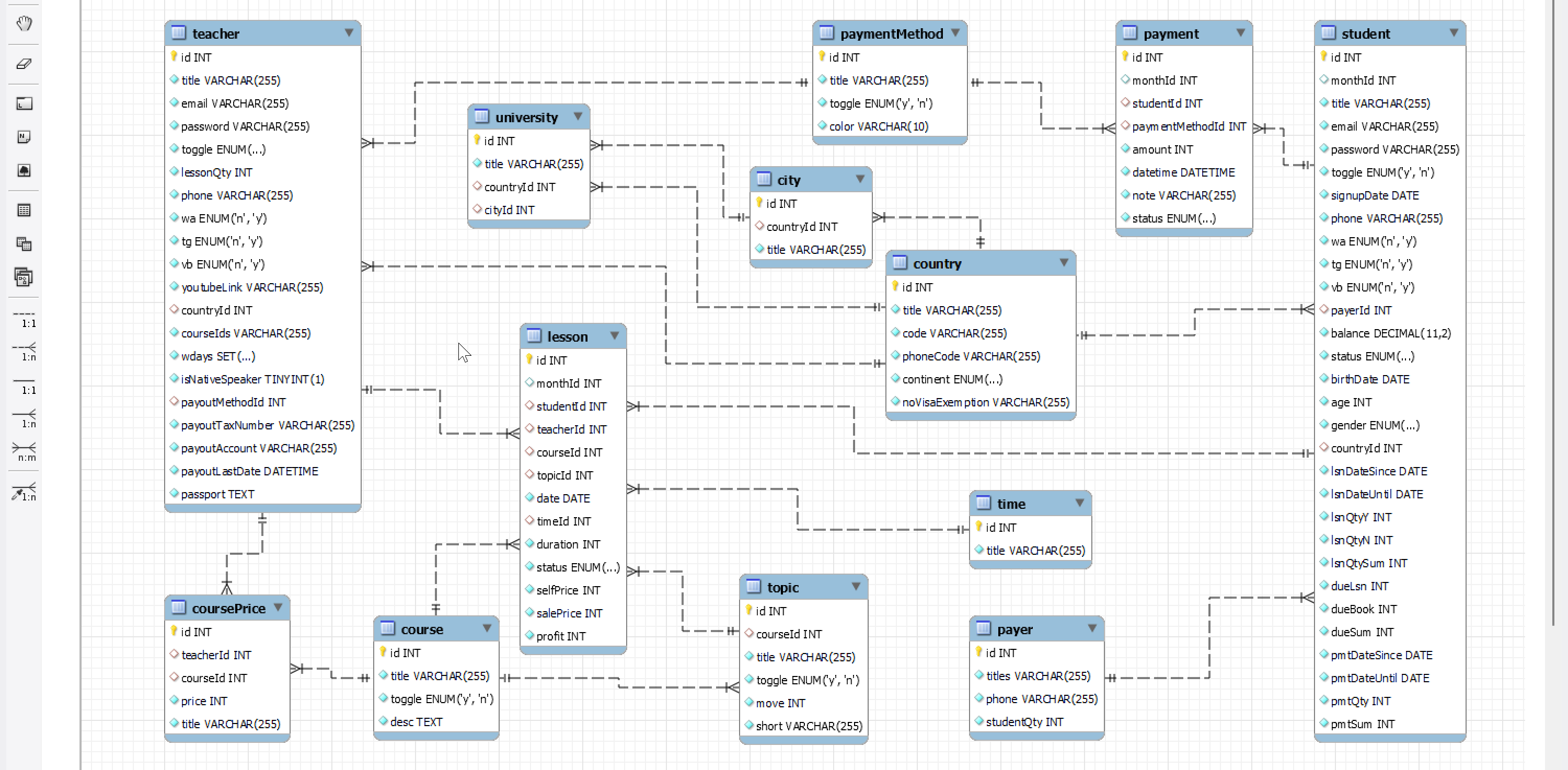 As you can see, here we not only use student title - reachable via {studentId.title}, but also student's country title - reachable via {studentId.countryId.title}, in addition to Lesson-record's own properties {date} and {id}
