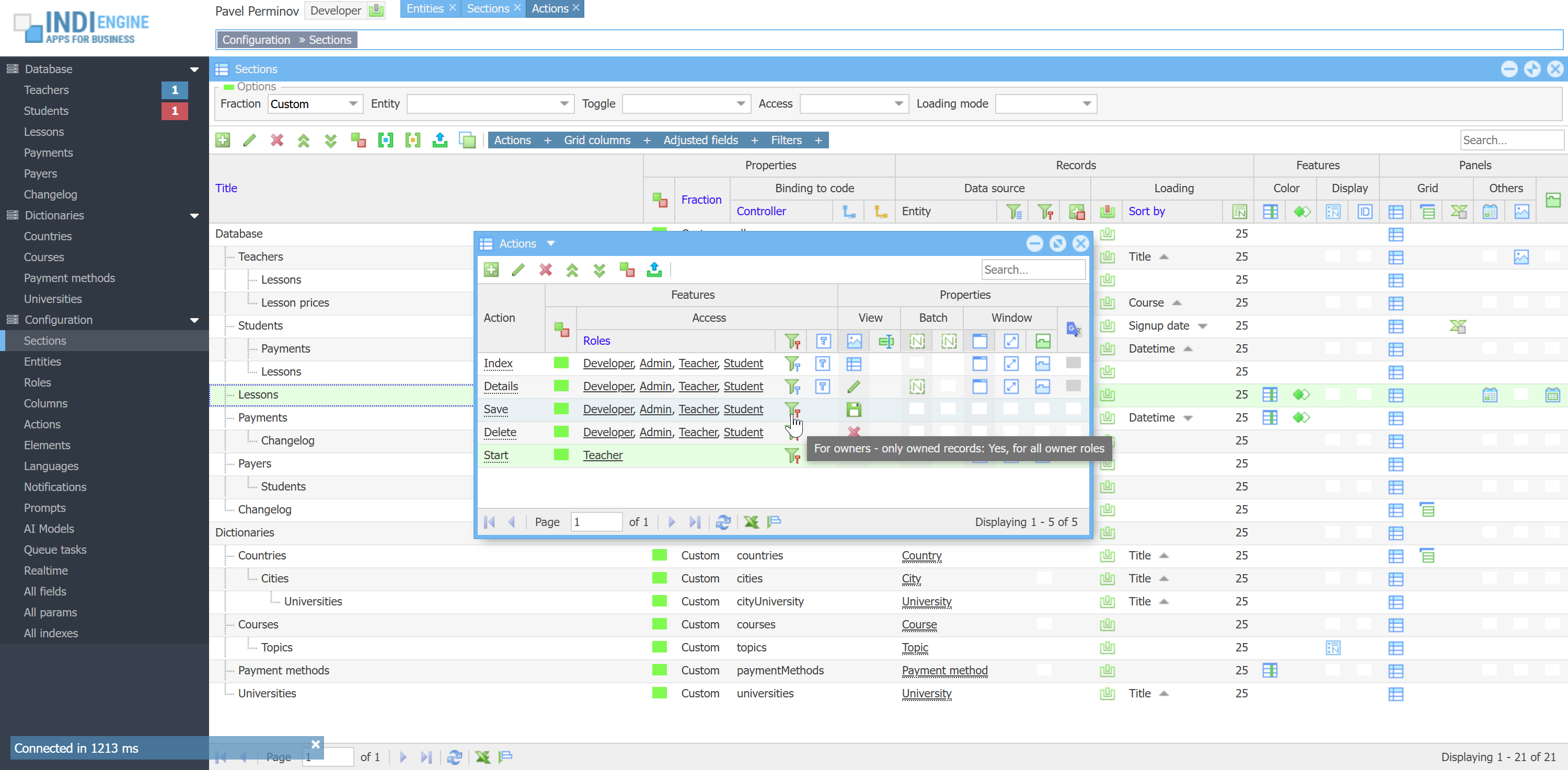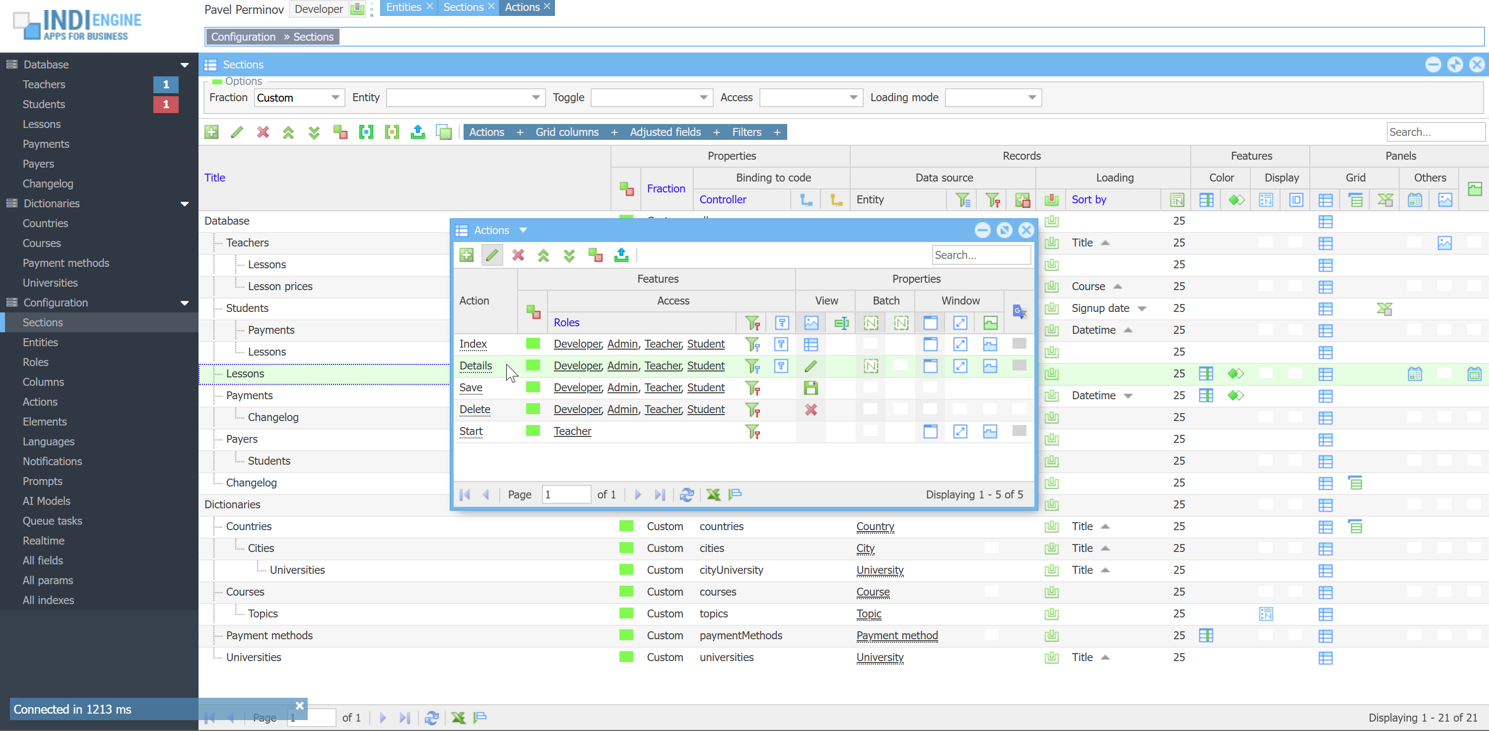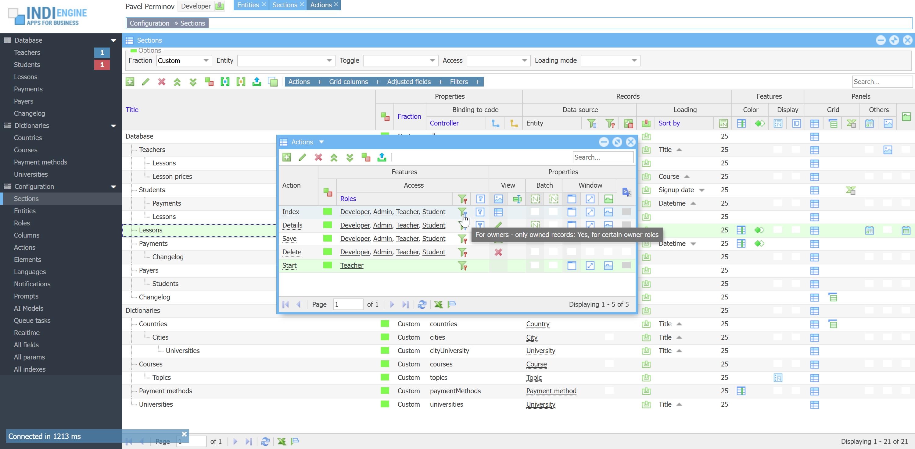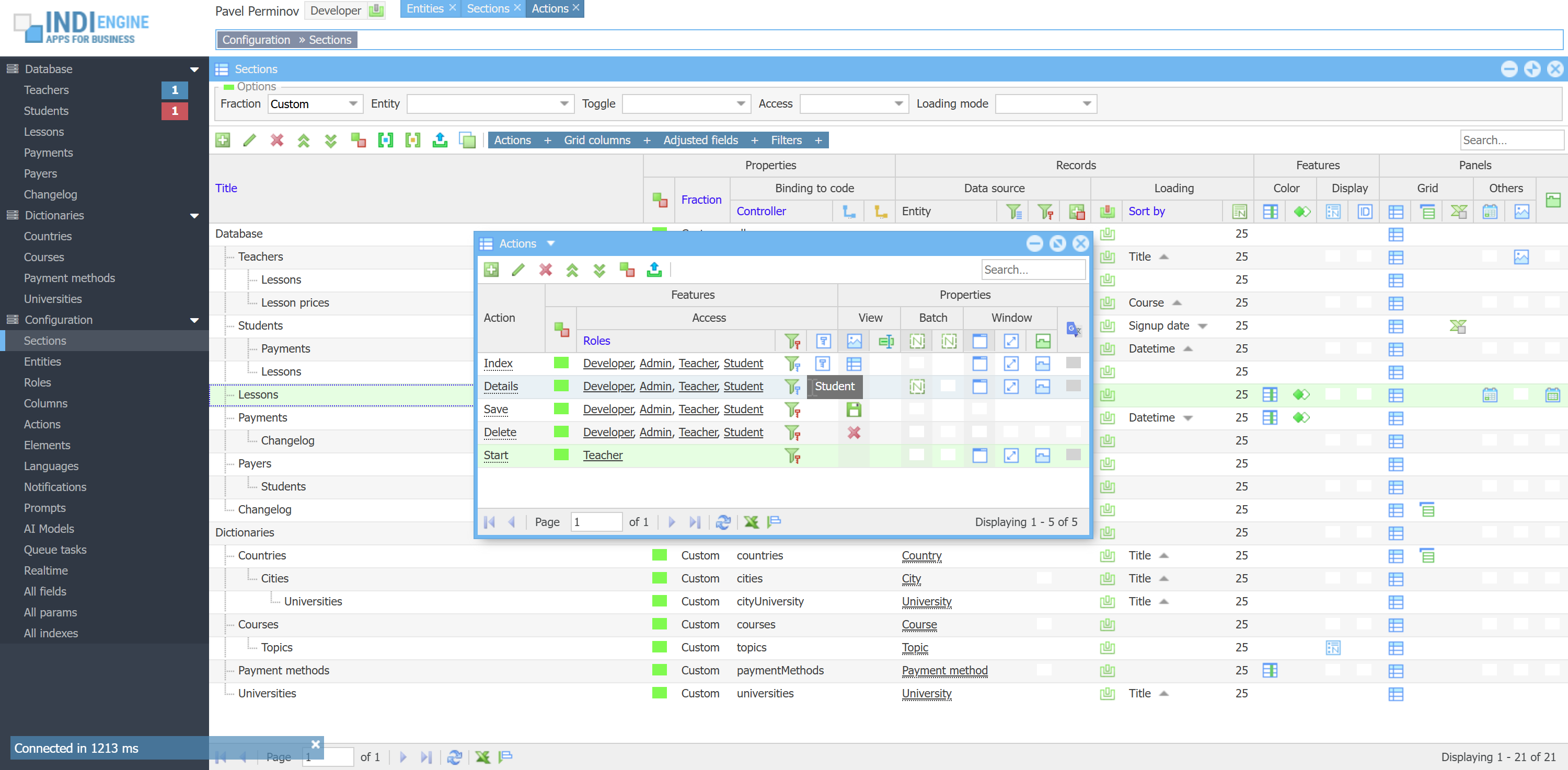 Once those steps are completed, you can explore the resulting app, as well as refine and extend it because it remains fully editable using a wide range of other Indi Engine's zero-code capabilities, specifically designed to handle high on-screen data-density, along with a flexible access system.